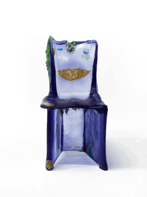 Though only thirty-four of the intended eighty-one initial chairs were actually produced during the artist’s 1984 residency at Pratt University, new technologies and pigments have inspired Pesce, now 79 years old, to rethink his original Pratt Chair. Utilizing a recently developed mold based on the thirty-four year old design, Pesce has created sixteen new resin chairs, each in a unique color and level of transparency, beginning with pink and advancing to multicolor. Pesce’s reexamination of this three-decade old design suggests that an artist’s work is never over. While resources and technology may evolve, impacting one’s process of creation, good design is forever.