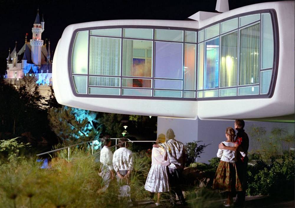 Built in Disneyland in 1957, the House of the Future was constructed out of 16 identical pre-fabricated plastic shells, which were shipped to Tomorrowland for on-site assembly. The project’s design team included MIT architects as well as faculty from the school’s engineering department; a far cry from the youth-focused environment one associates with a Disney theme park. The house featured four symmetrical wings – each of which were capable of supporting 13 tons – that cantilevered off of a central core support system, and were fabricated entirely out of glass-reinforced plastics. While for Monsanto the home’s primary purpose was to advertise plastic as a high quality, engineered material used for the design of everyday objects and structures, the project also had architectural and technology-driven motives.
