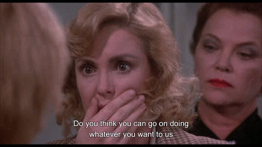 And if being locked in a grandmother’s attic soundtracked by eerie music doesn’t seem creepy enough for you, just know that the film is complete with pretty much every other 1980s scary movie motif you can think of. Starting with the fact that the attic is covered in cobwebs and sits atop a gothic mansion on a gloomy estate, the film also features a bible toting, gem adorned evil grandma dressed black velvet as well as multiple ‘no not that door- don’t go in there’ kind of moments.
